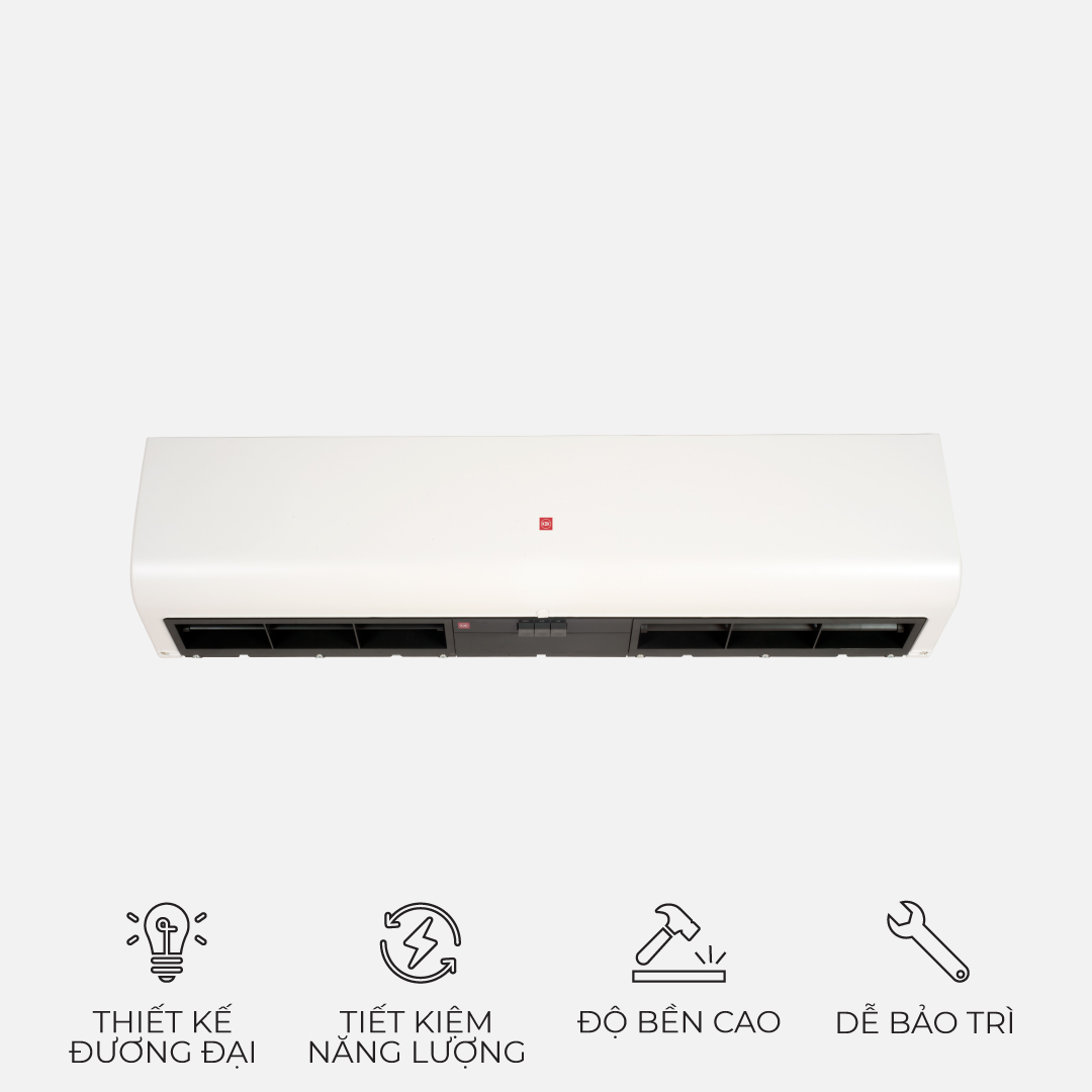 - Thiết kế quạt lồng sóc (sirocco) độc đáo tạo ra cánh cửa không khí mạnh mẽ cho việc chắn gió tốt hơn