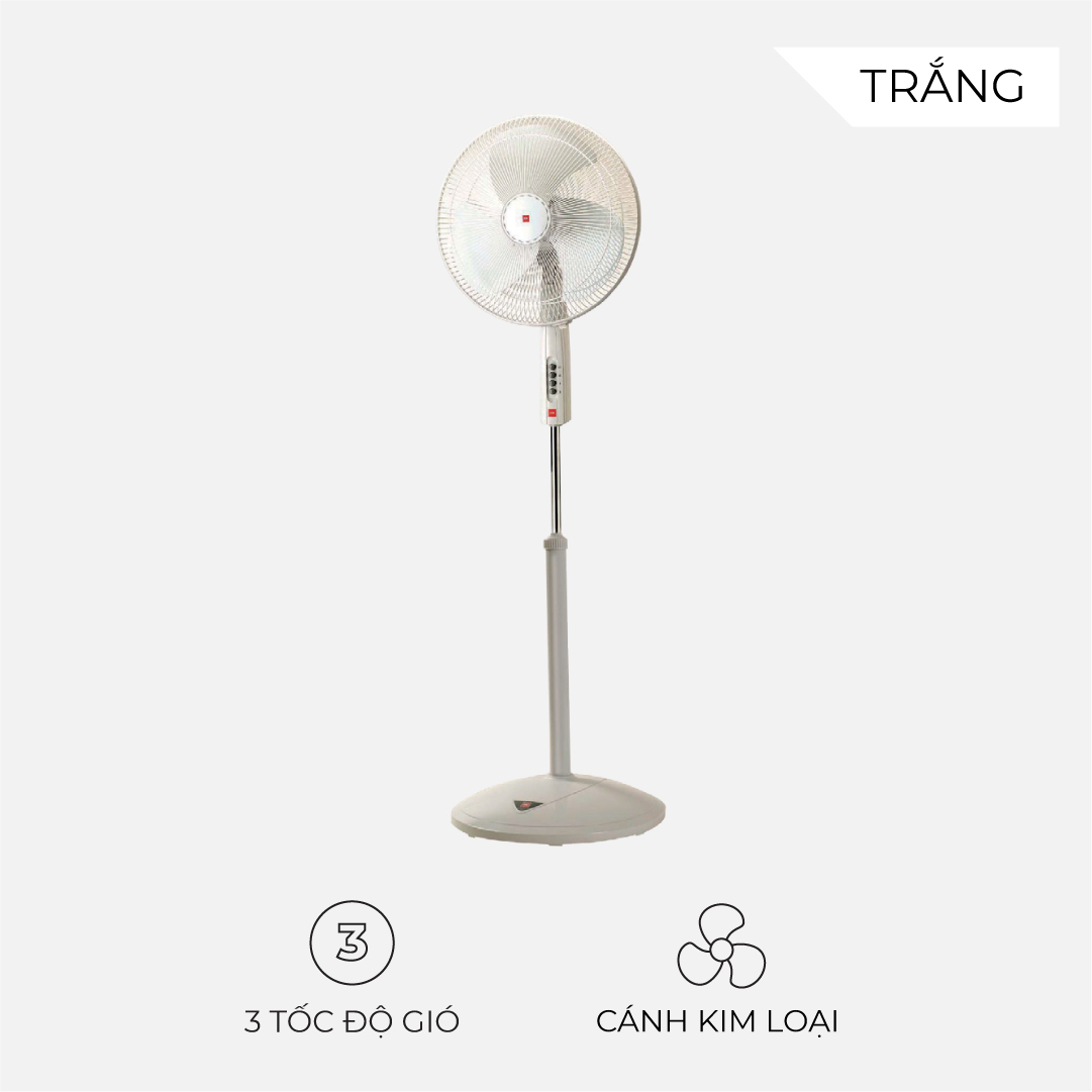 Quạt đứng KDK P40U có 3 cánh kim loại chắc chắn, 3 cấp độ gió và thiết kế bền bỉ, hiện đại với đế tròn rộng giúp tăng độ ổn định.